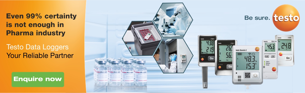 subject to high requirements and is a key element of quality assurance in the pharmaceutical industry. Our reliable and robust CFR temperature data logger supports you in meeting these requirements efficiently. This is what the 190-T4 CFR temperature data logger offers High-precision: precise CFR data logger with two long, flexible probes (length 775 mm, Ø 1.5 mm), reading the memory of 30,000 readings per channel Two long, flexible probes: ideal for sterilization applications, measuring surface temperature in freeze-drying systems and determining the acclimatization of the time between core and outer temperatures. In combination with the freeze dryer probe holder (please order separately), the surface the temperature of freeze-drying systems can be accurately measured Slim design: with a diameter of 20 mm, the loggers are ideal for use in tight objects or cramped conditions Robust and durable: high-quality materials and innovative construction make the CFR data logger particularly robust and durable. Thanks to hermetically sealed measuring technology in a separate stainless steel housing, the CFR data logger impresses due to its reliability and maximum robustness Battery change in seconds: the practical thread enables the battery to be screwed onto the CFR data logger and changed intuitively and securely without using any tools Reliably tight: the CFR data logger remains 100% tight even after the batteries are changed. The battery housing is coated in highly temperature-proof polyether ether ketone (PEEK) Flexible height: the size of the CFR data logger can vary with two different types of battery. The small battery makes the logger's dimensions particularly compact. The larger battery (included in the scope of delivery) is suitable for measurements at low temperatures, for example in freezer systems Programming, readout, and analysis of the data logger Very practical to use: in addition to being used for storage, the multifunction case can also be used for parallel programming and readout of up to 8 data loggers simultaneously. This means you do not need any additional readout unit and you also save time. With the specially developed 21 CFR Part 11-compliant testo 190 CFR software (please order separately) you can program and read out the data logger, as well as analyzing the measurement data, on the PC. The clear software structure guides you intuitively through the process step by step. During input, it provides help at critical points through warnings. The software thus enables even inexperienced users to carry out the measurement process easily. Delivery scope: